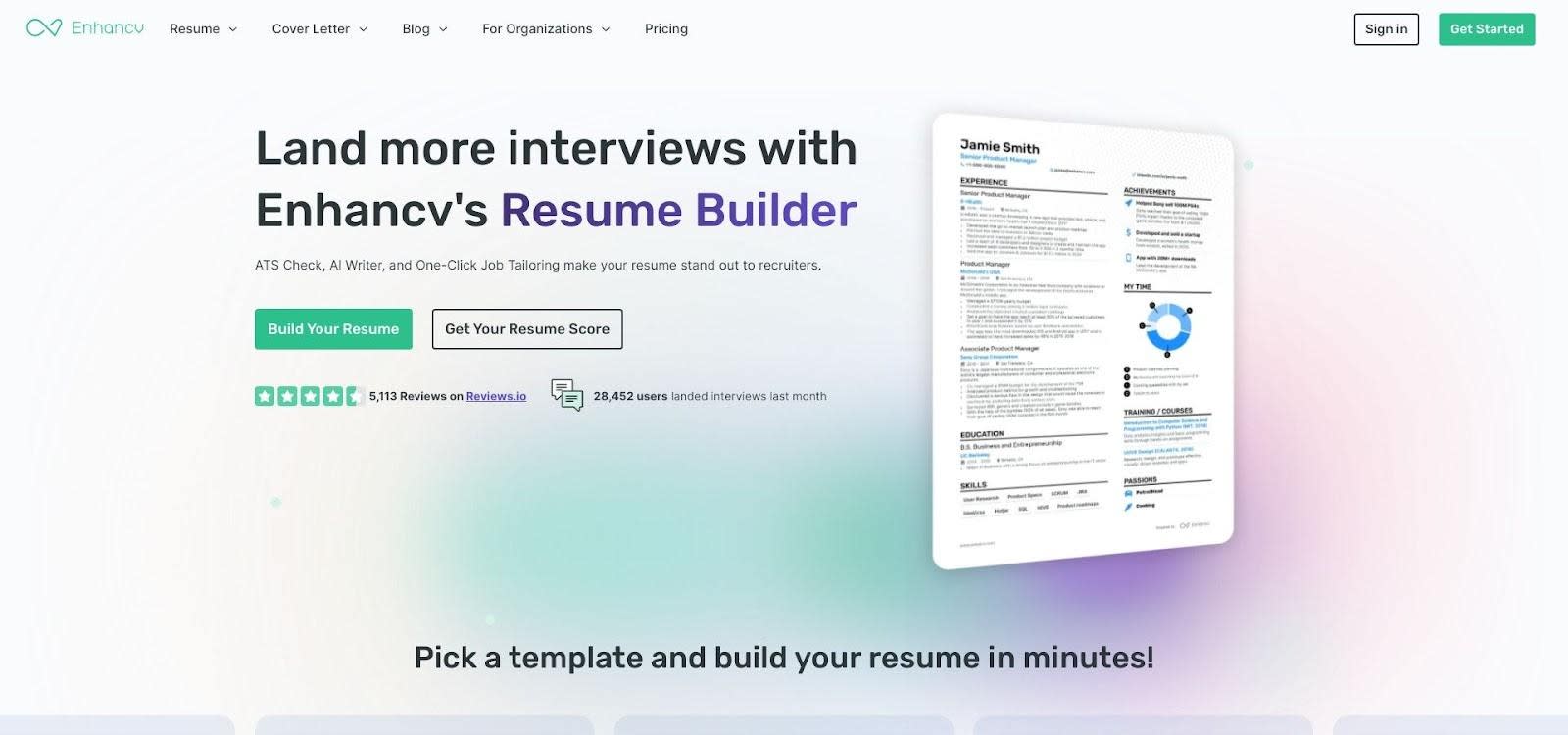 | Enhancv | 7-day trial | n/a | Content analyzer | Template toggle | Creative tech resumes |