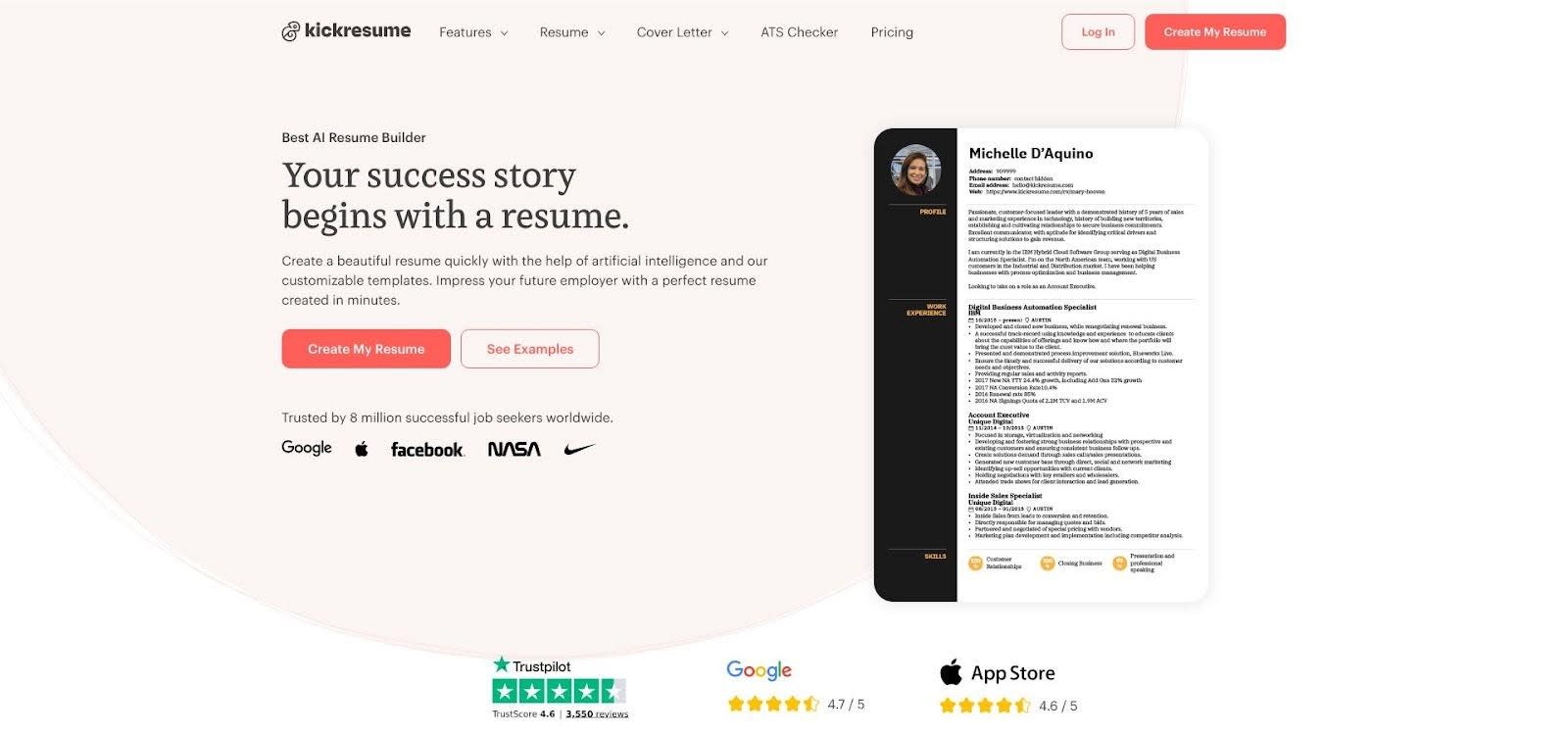 3. Kickresume: best value when you have a .edu email