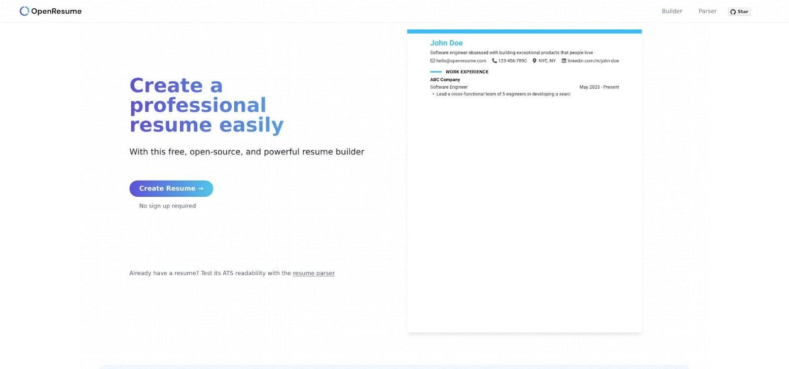 Any platform that forced photos, multi-column layouts, or data-harvesting sign-ups failed the ATS test immediately. We followed the same single-column, no-photo rule baked into its OpenResume best-practice template.
