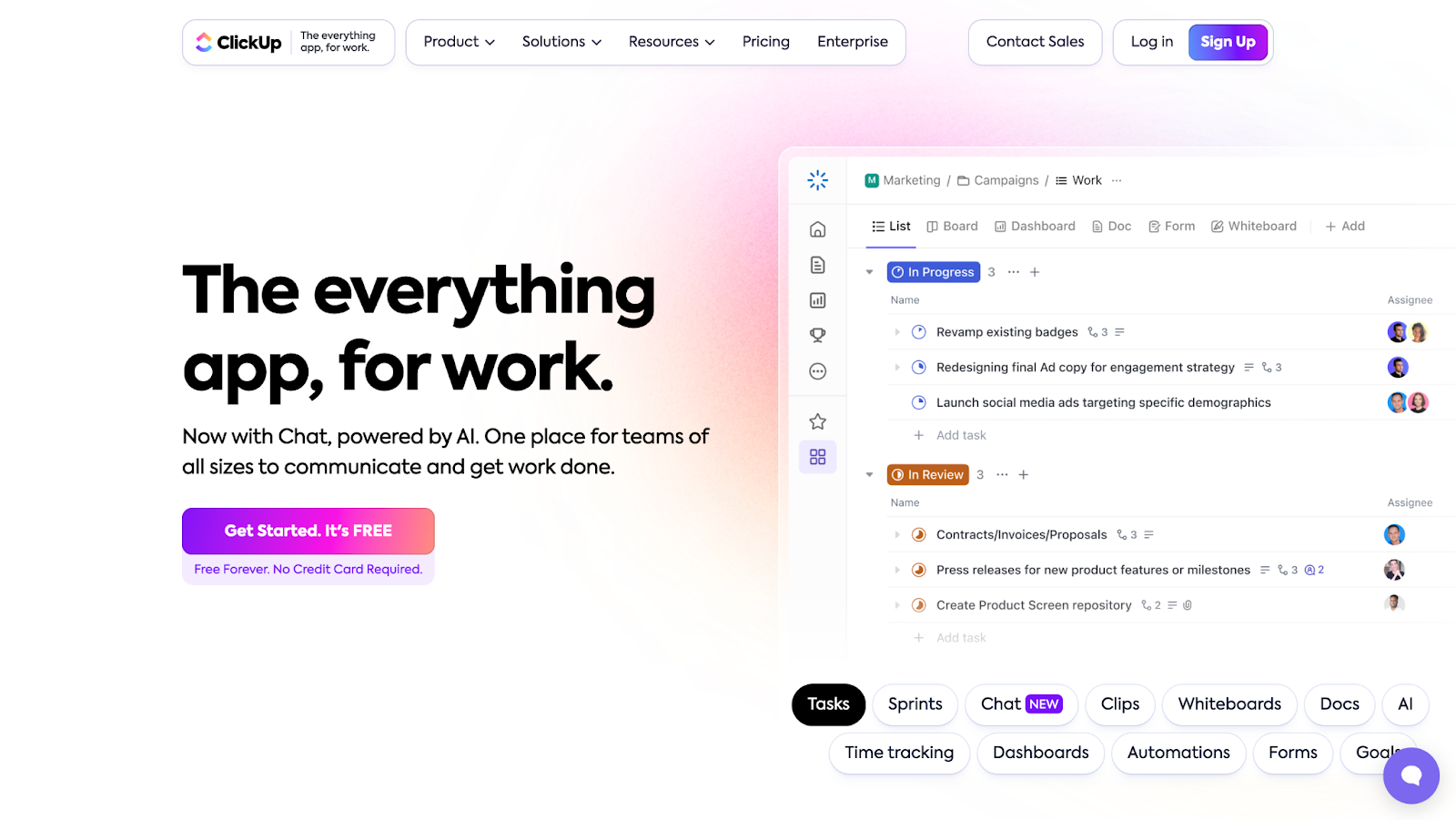 ClickUp is a comprehensive project management and productivity tool tailored for teams looking to streamline operations, manage tasks, and collaborate effectively. With its AI capabilities, ClickUp enables SaaS startups to improve workflow efficiency by automating routine tasks, setting up smart notifications, and providing predictive task completion insights. Designed to adapt to various team needs, ClickUp's customizable dashboards and robust integrations make it an ideal choice for startups managing complex projects.